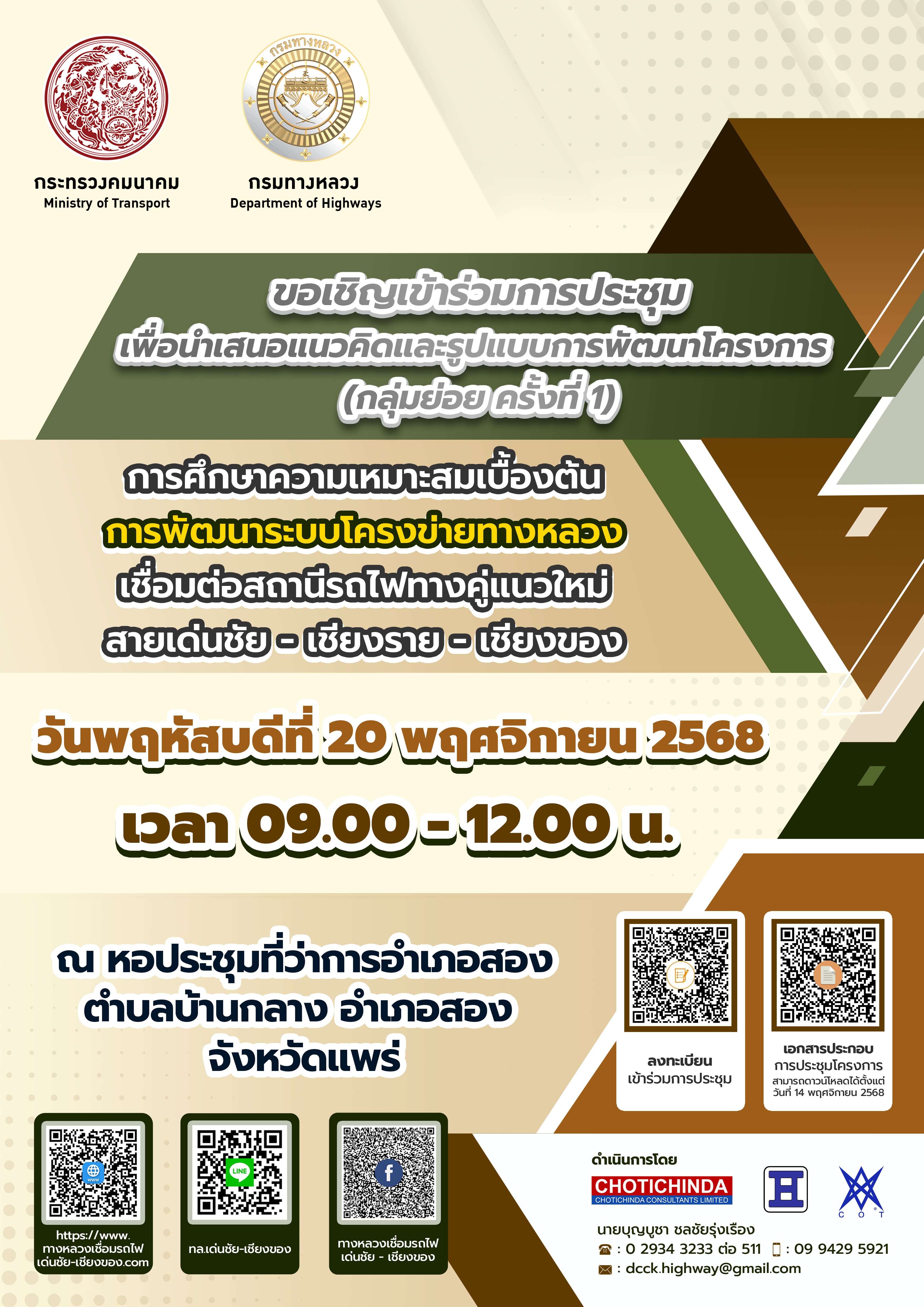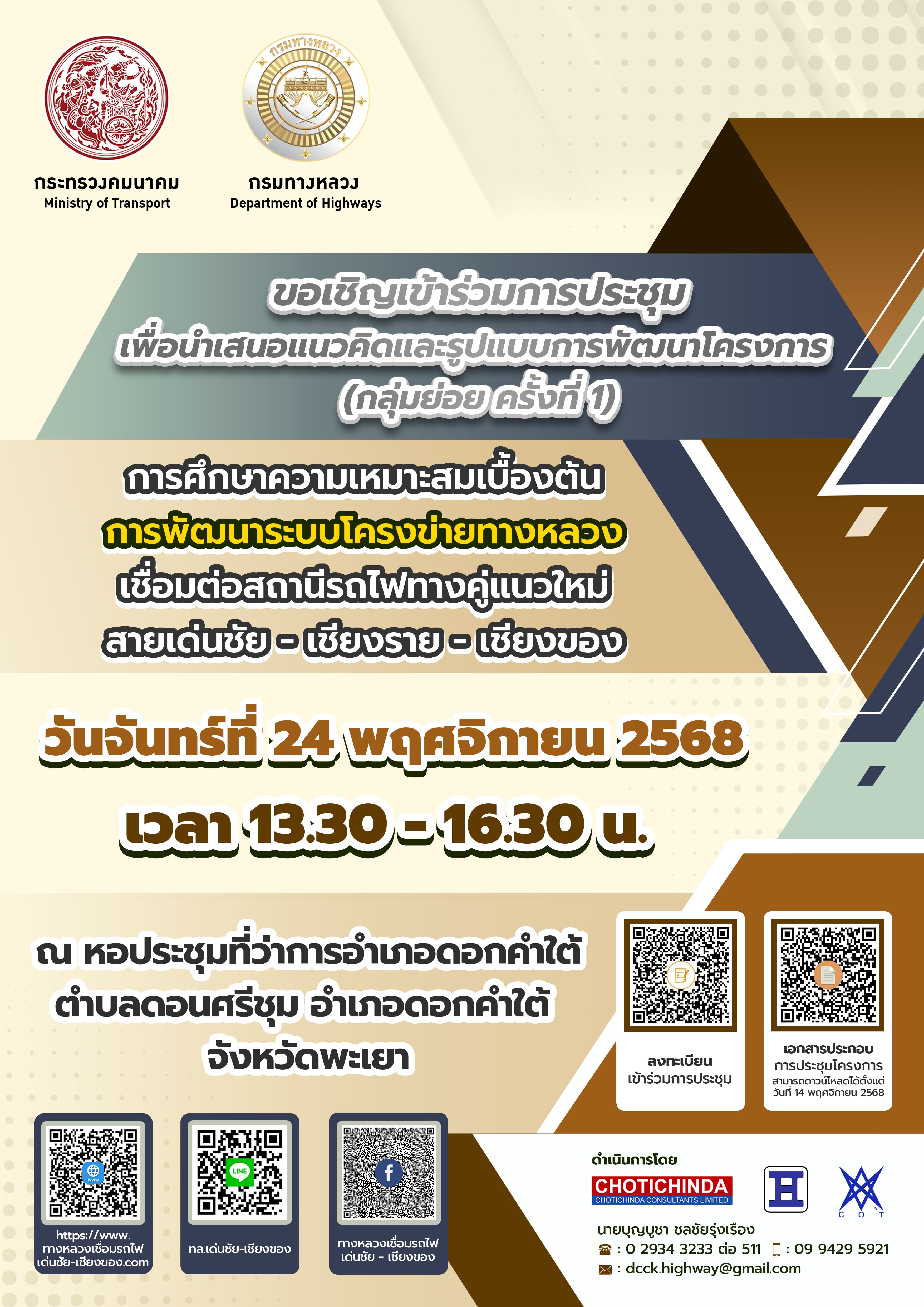 วันศุกร์ที่ 16 พฤษภาคม 2568 เวลา 08.30 - 12.00 น. ณ โรงแรมไชยนารายณ์ ริเวอร์ไซด์ ห้องศรีจอมทอง ชั้น 2 ตำบลริมกก อำเภอเมืองเชียงราย จังหวัดเชียงราย